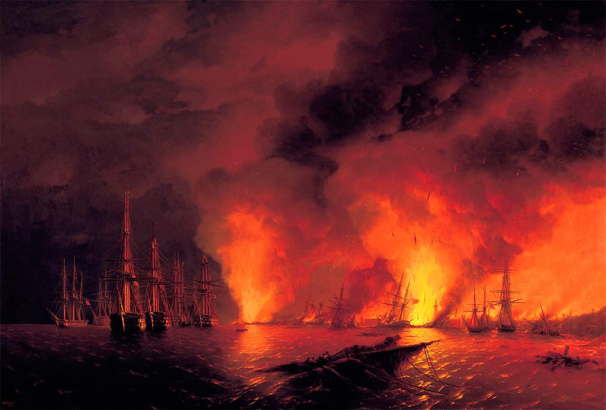 На период творчества после службы в штабе морских сил приходится расцвет таланта Айвазовского. Его произведениями украшались кабинеты и дома самых высокопоставленных чиновников, а также центральные залы учреждений и ведомств. На эти же годы приходится написание одного из самых знаменитых шедевров великого русского мариниста — «Чесменский бой» (1848 год). Через два года их список пополнил «Девятый вал». Кстати, реалистичность батальных сцен на картинах Айвазовского имеет под собой веское основание. В ходе Русско-Турецкой войны ему не раз доводилось выходить в море в составе команд действующих кораблей российского флота.