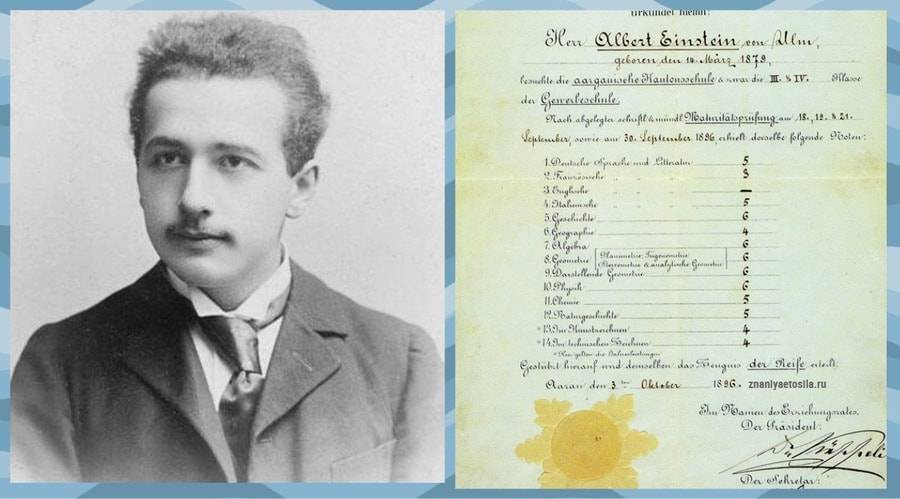 В 1896 году, когда Эйнштейн оканчивал школу, шестёрка стала самой высокой оценкой. Очевидно, кто-то впоследствии заглянул в ведомость и ужаснулся, не учитывая того, что шкала оценок раньше была другой. Так что оценки — не главное.