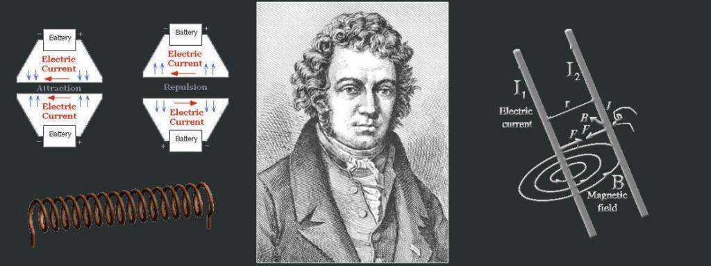 - Андре-Мари Ампер применил математику к своим экспериментам с электромагнетизмом, чтобы сформулировать физические законы. Наиболее важный из них – это силовой закон Ампера (сформулирован в 1823 году) – показывает, что возникновение притяжения или отталкивания между двумя проводами, несущими токи, напрямую зависит от длин и интенсивности проходящего через них тока. Физическое происхождение этой силы состоит в том, что каждый провод генерирует магнитное поле.