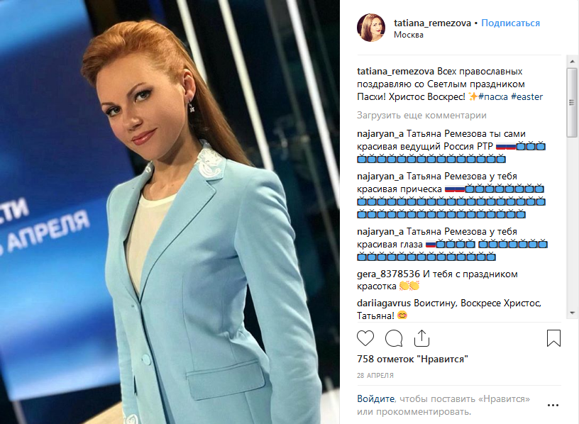 Праздники в честь победы в Великой Отечественной войне – в списке ее любимых. Восьмого мая 2019-го Татьяна Ремезова в специальном выпуске на «России 1» пообещала зрителям, что их ждут грандиозные мероприятия и высокопрофессиональная работа всех служб центрального ТВ. А 9-го мая, кроме репортажей с Красной площади, она приняла участие в съемках шествия Бессмертного полка. Кстати, это был уже четвертый раз для нее, когда она освещает это грандиозное событие. В своих соц. сетях Татьяна написала потом: «Спасибо всем, кто в строю! Ком в горле каждый раз, когда я с вами».