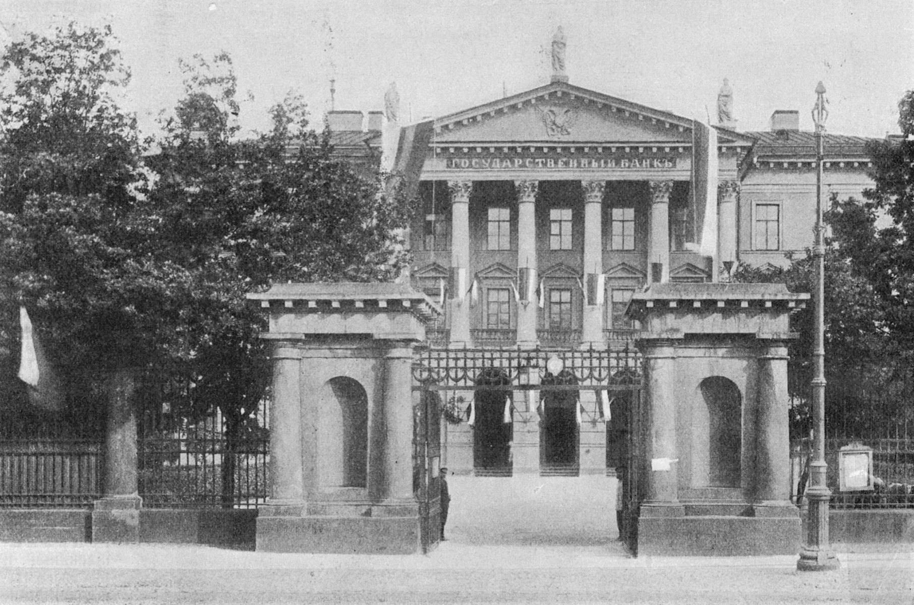С 1799 по 1805 год здесь находился Банковский монетный двор. До 1817 года в здании выпускали ассигнации, а в 1843-м банк закрыли за ненадобностью – как раз тогда в обиход ввели государственные кредитные билеты. В 1860-х годах в железных павильонах-беседках во дворе со стороны Садовой публично сжигали износившиеся бумажные деньги. Это событие привлекало много зрителей.