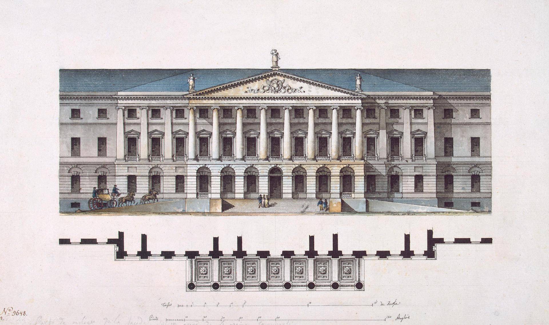 Так в 1769 году был основан Ассигнационный банк, а в 1782 году императрица Екатерина II повелела построить дня него специальное здание. 5 мая 1783 года был утвержден проект Кваренги, но первоначальный замысел менялся во время строительства несколько раз.