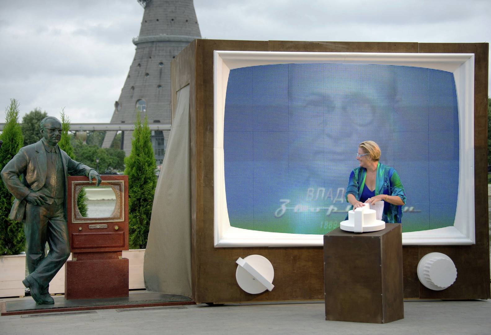 - Внучка изобретателя Сандра Кнудсен на торжественной церемонии открытия памятника изобретателю телевидения инженеру Владимиру Зворыкину на территории парка возле телецентра «Останкино» в Москве.