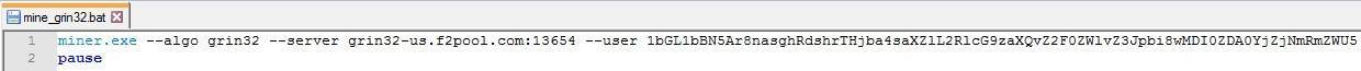 Так выглядит настройка Gminer miner для f2pool для добычи Grin32: