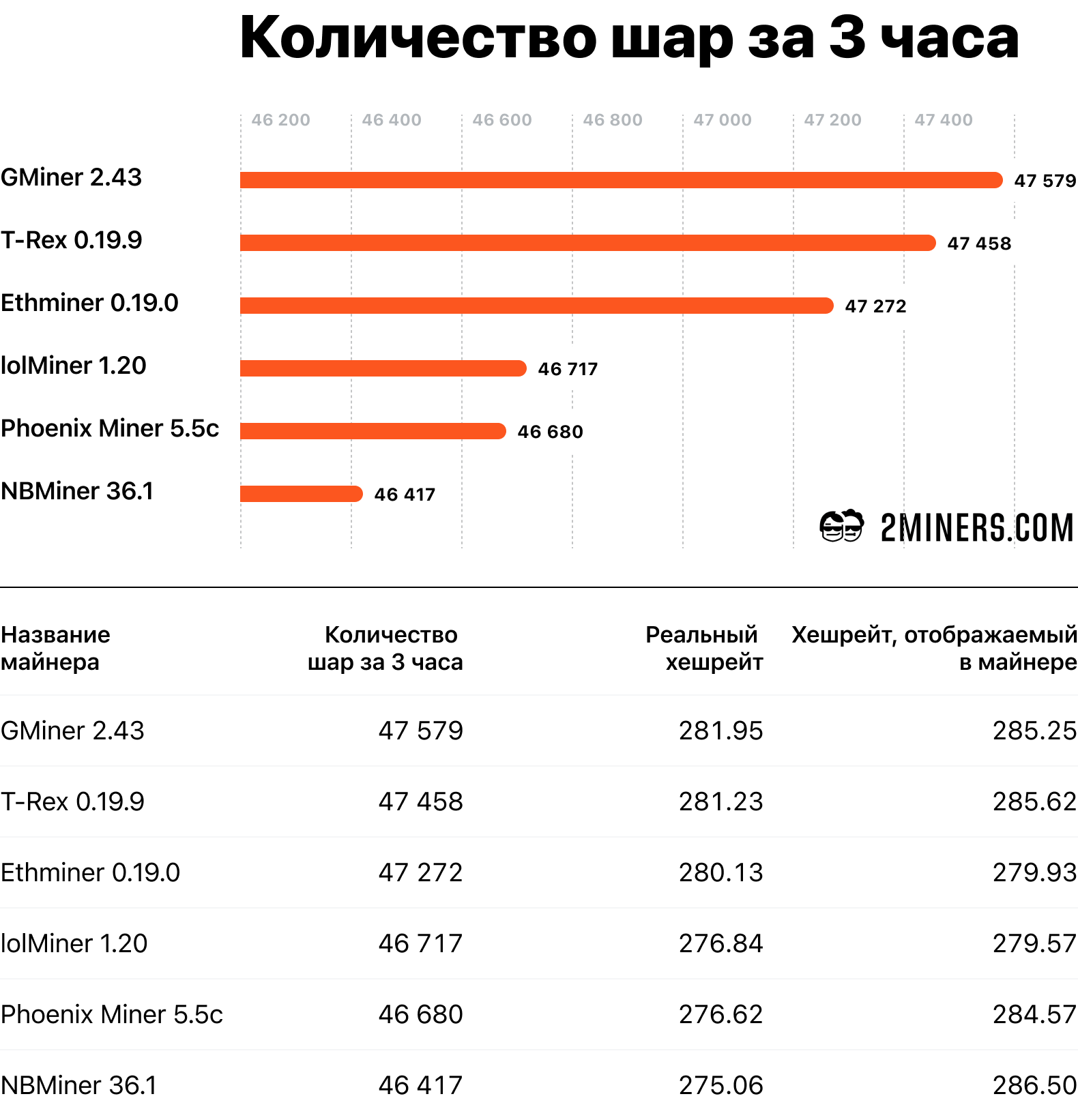 Хотим подчеркнуть тот факт, что если разработчики майнеров честно считают хешрейт и не допустили ошибок в коде, то при выборе майнера можно смело ориентироваться на хешрейт, который он пишет.