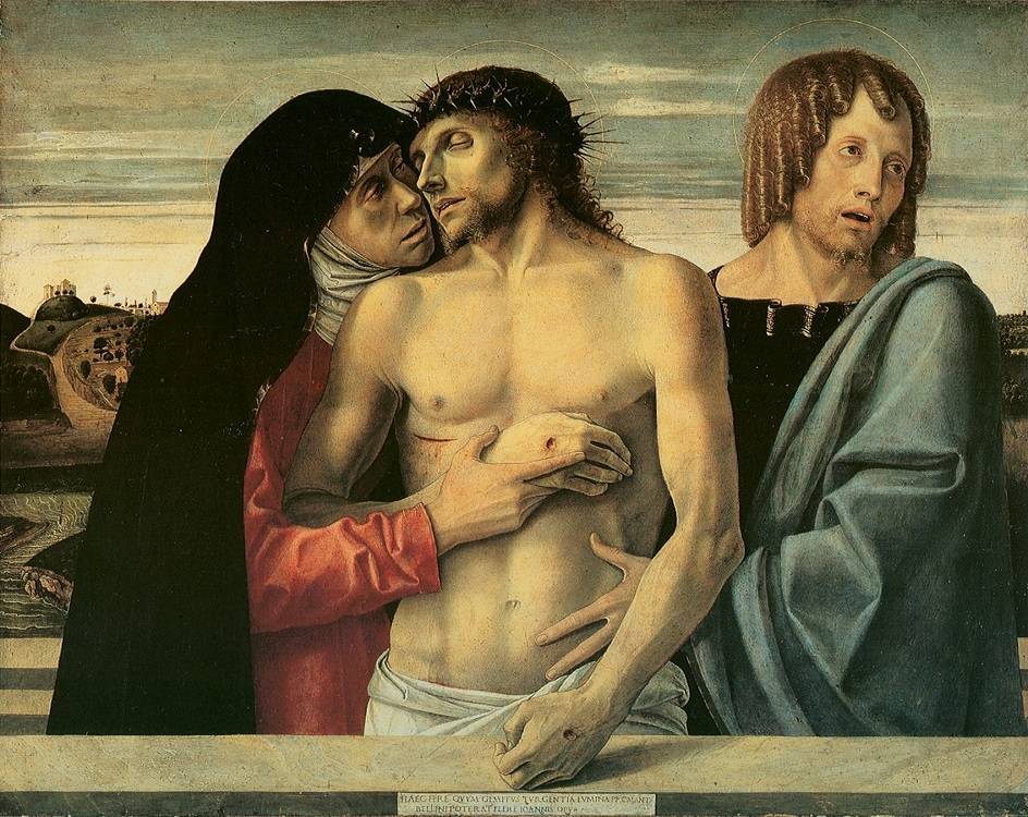 - «Пьета» (ок. 1465 г.) — традиционный сюжет оплакивания Христа проникнут глубокой скорбью, хотя выражения лиц персонажей нельзя воспринять однозначно. Работу отличает некая недосказанность, характерная для творчества Беллини.