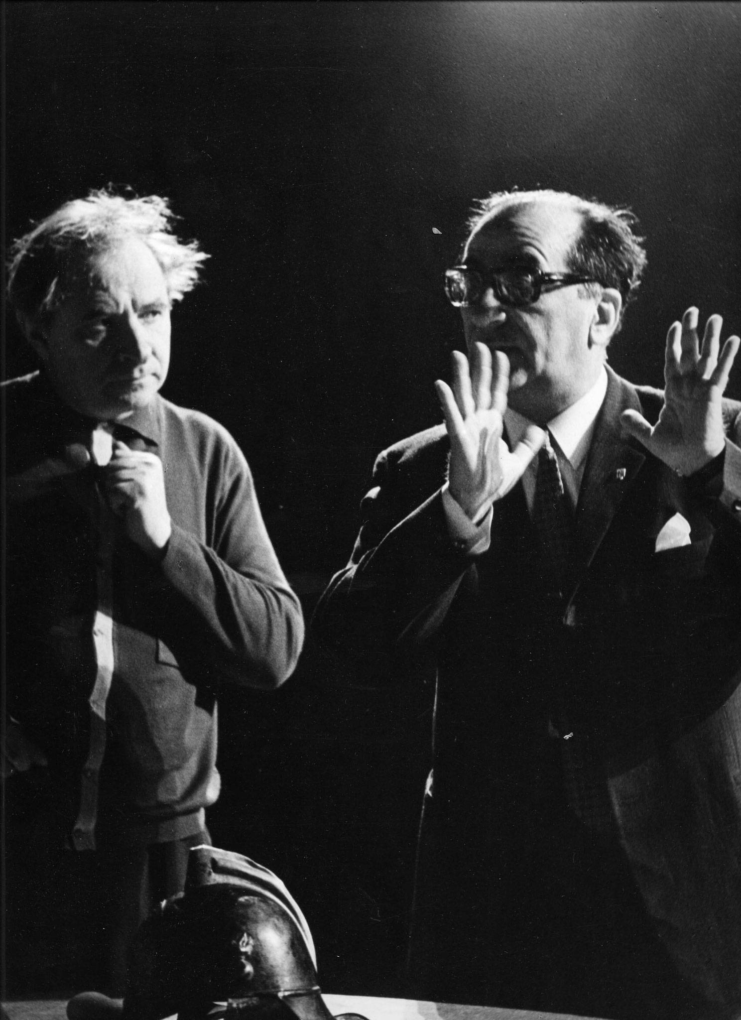Евгений Лебедев и Георгий Товстоногов после спектакля «История лошади»