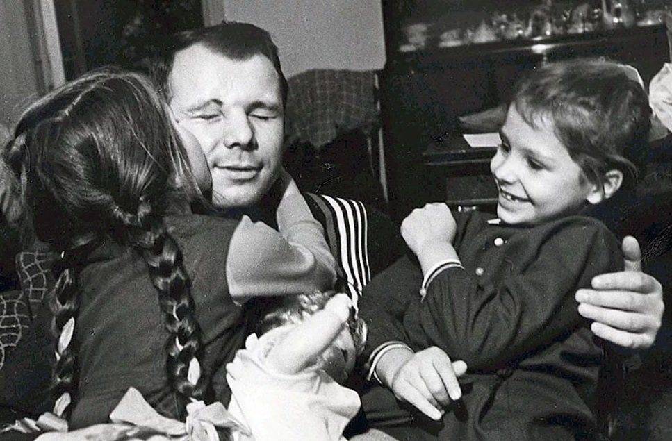 4. У Юрия и Валентины родились две дочки, Лена и Галя, которым отец дал домашние прозвища – «Профессор» и «Чижик», уж больно разными были девчонки. Младшая, Галя, родилась всего за месяц до эпохального полета, 7 марта. Занятый предполетной подготовкой папа-космонавт новорожденную малышку практически не видел.