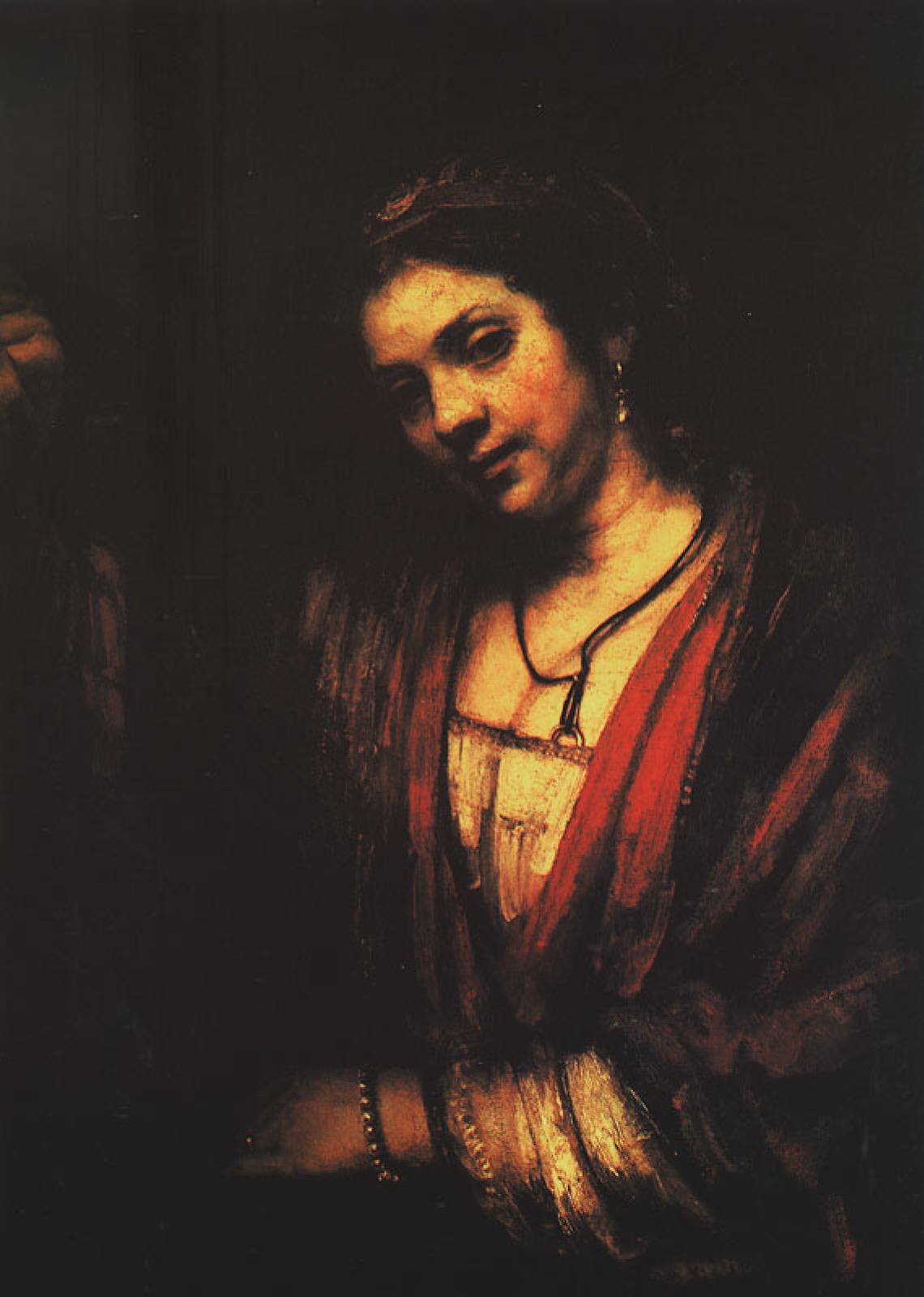Образ второй жены также запечатлен на полотнах знаменитого живописца. Молодостью и красотой она уступала первой, однако художник смотрел на нее глазами любви и изображал с большой теплотой. Но церковь выступила с осуждением его образа жизни, и дочь, которую подарила Рембрандту вторая жена, была объявлена незаконнорожденной. Бедственное положение привело к тому, что семья живописца вынуждена была переехать в один из самых бедных кварталов Амстердама.