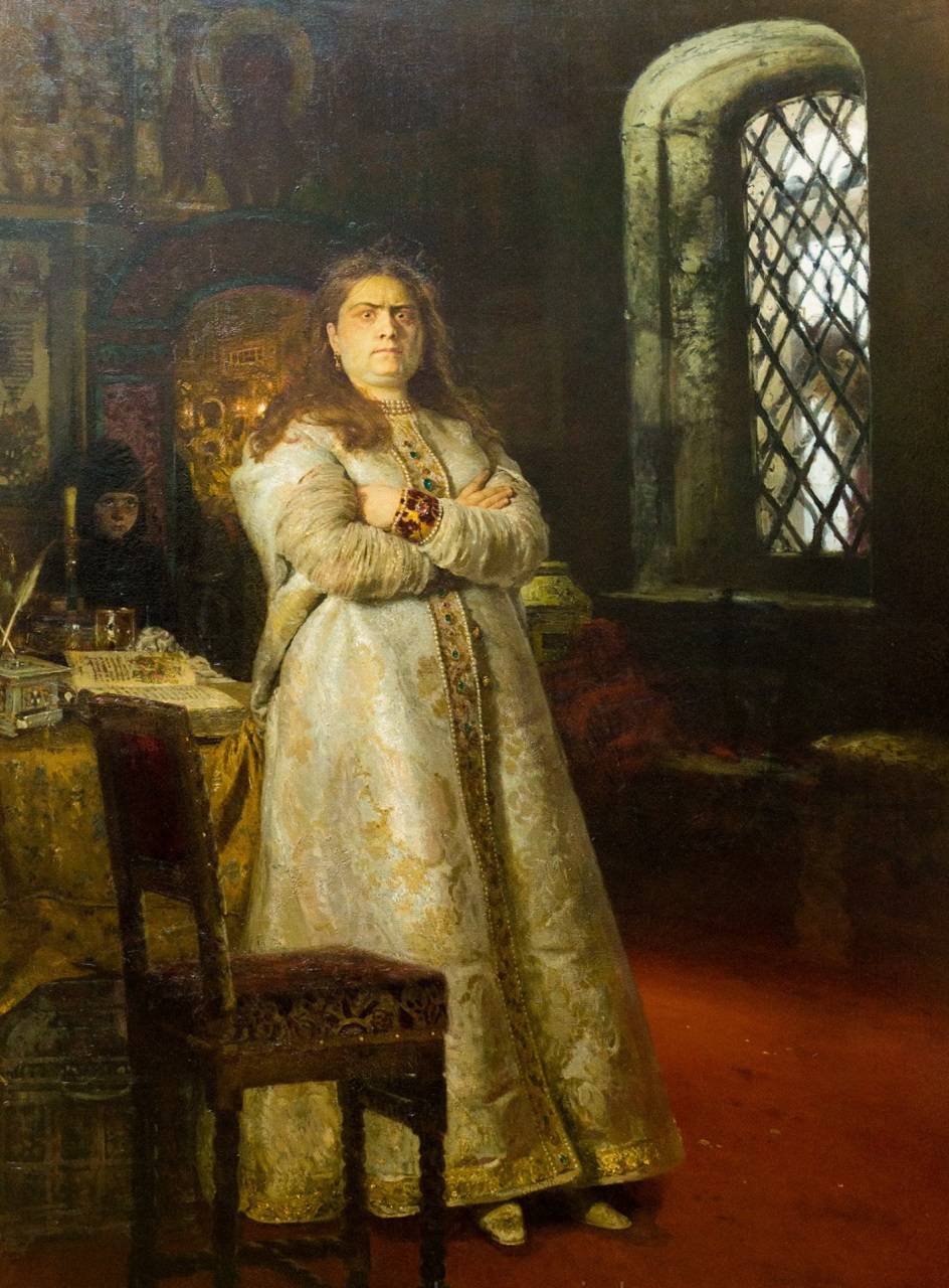 «Царевна Софья в Новодевичьем монастыре» (1879) — исторический портрет, передающий непростой характер сестры Петра I. На этой картине художник изобразил Софью Алексеевну уже заточённой в монастырскую келью, но не сломленной.