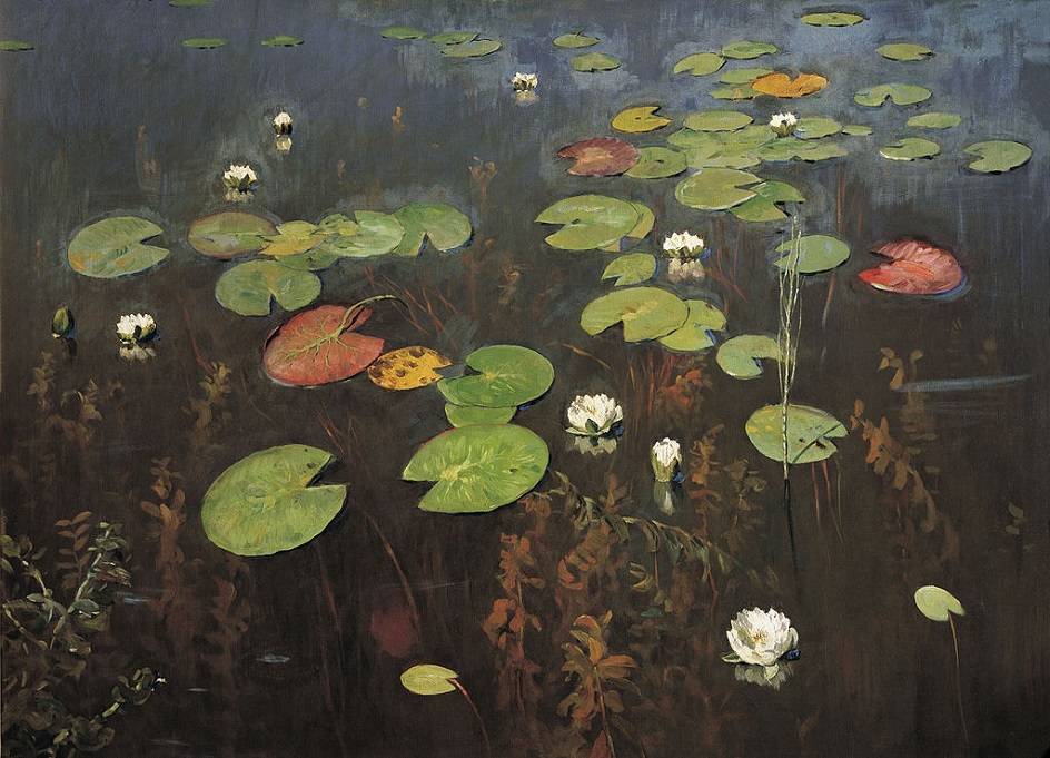 - Ненюфары (1895, Государственная Третьяковская галерея). Пейзаж на озере Островно у усадьбы «Горка». Тверская губерния.