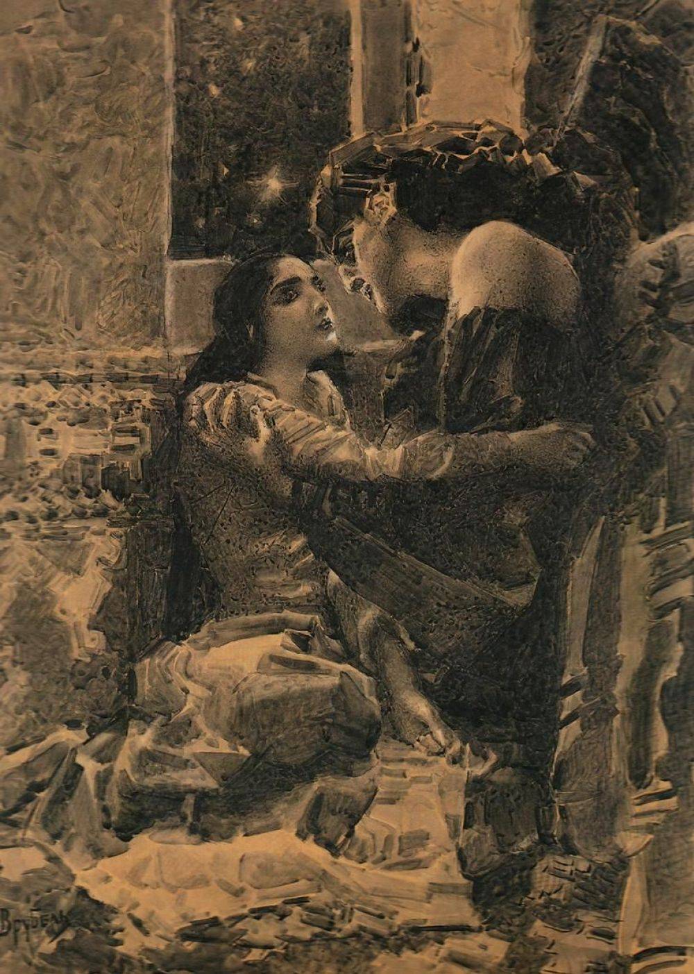 Свидание Тамары и Демона. Иллюстрация к поэме Михаила Лермонтова «Демон». 1890-е годы.