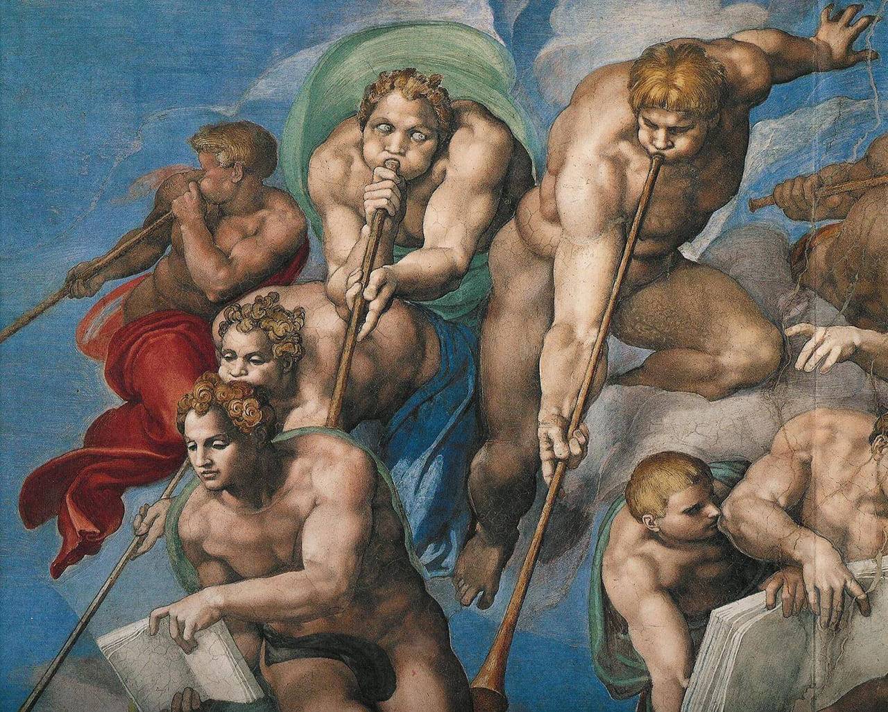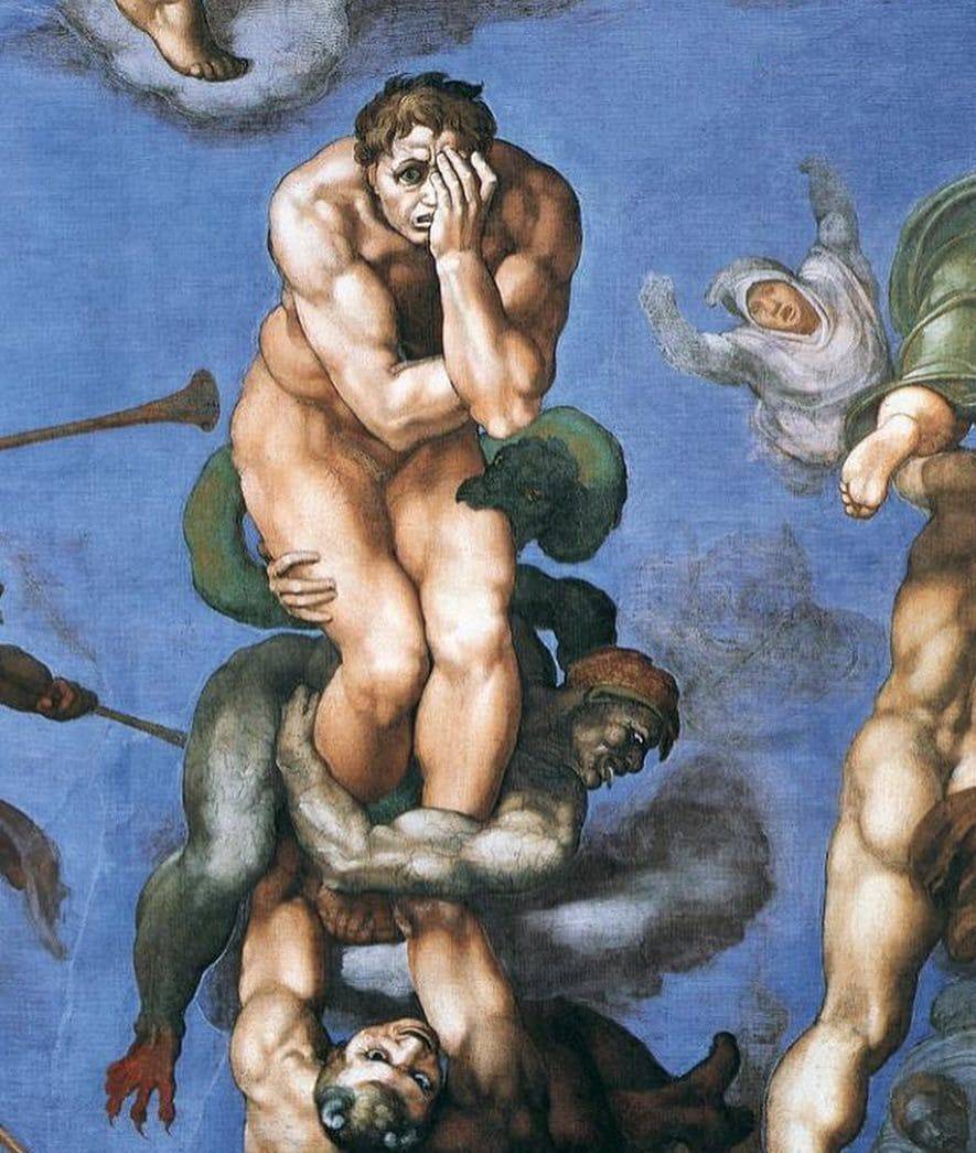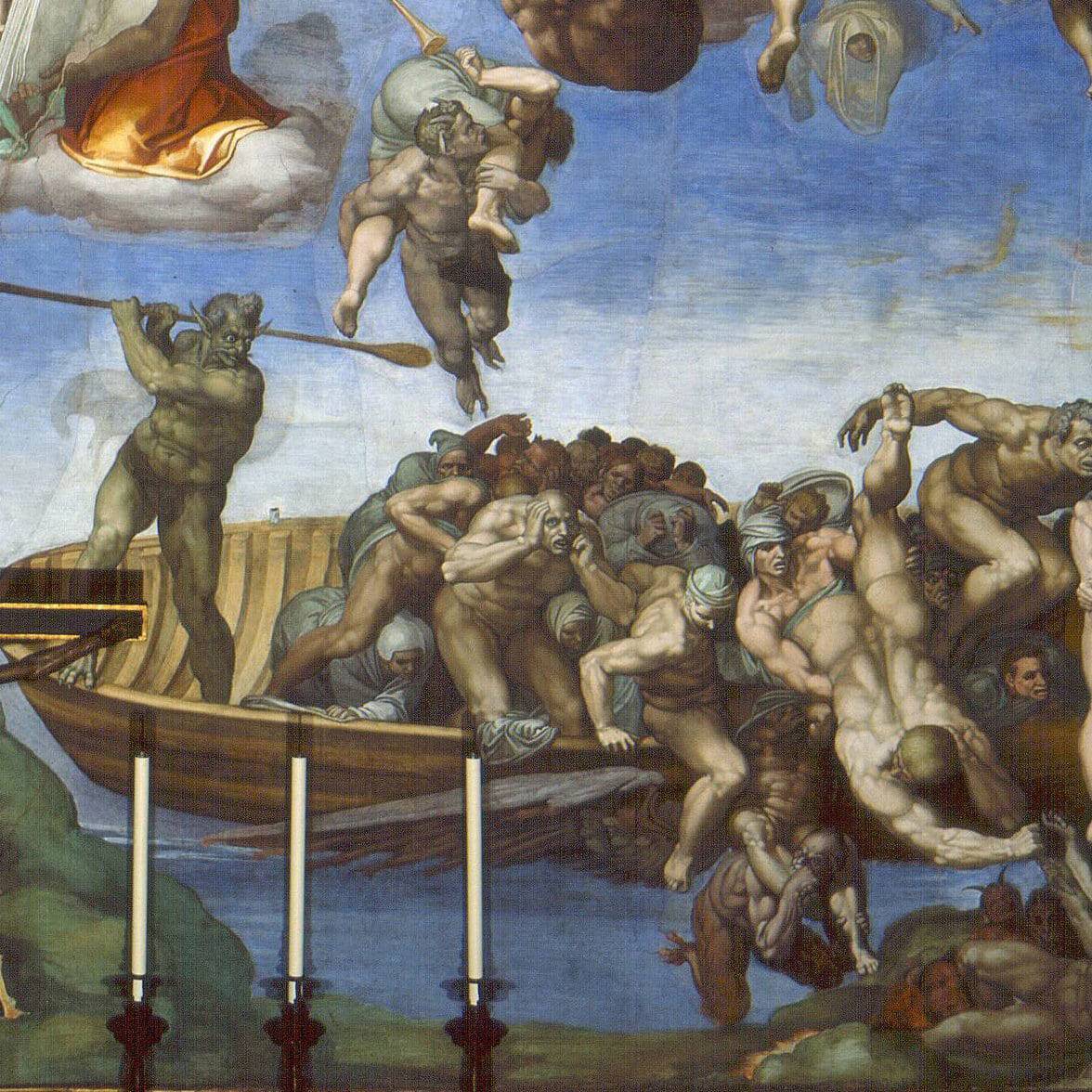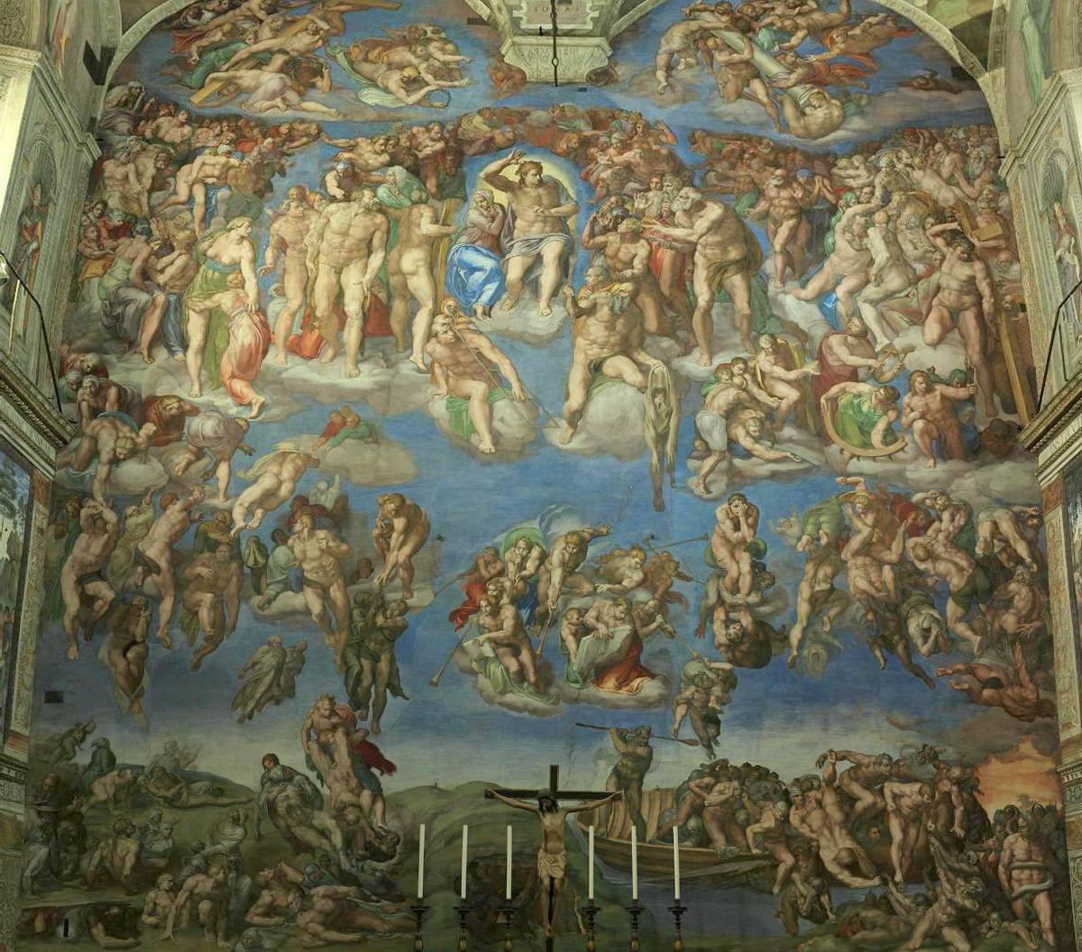 Из этих источников сложился фигурный стиль Микеланджело. Правда, со временем художник стал меньше интересоваться внешней привлекательностью и сосредоточился на передаче душевных переживаний. Это хорошо заметно, если сравнить «Страшный суд» с росписью свода Сикстинской капеллы.
