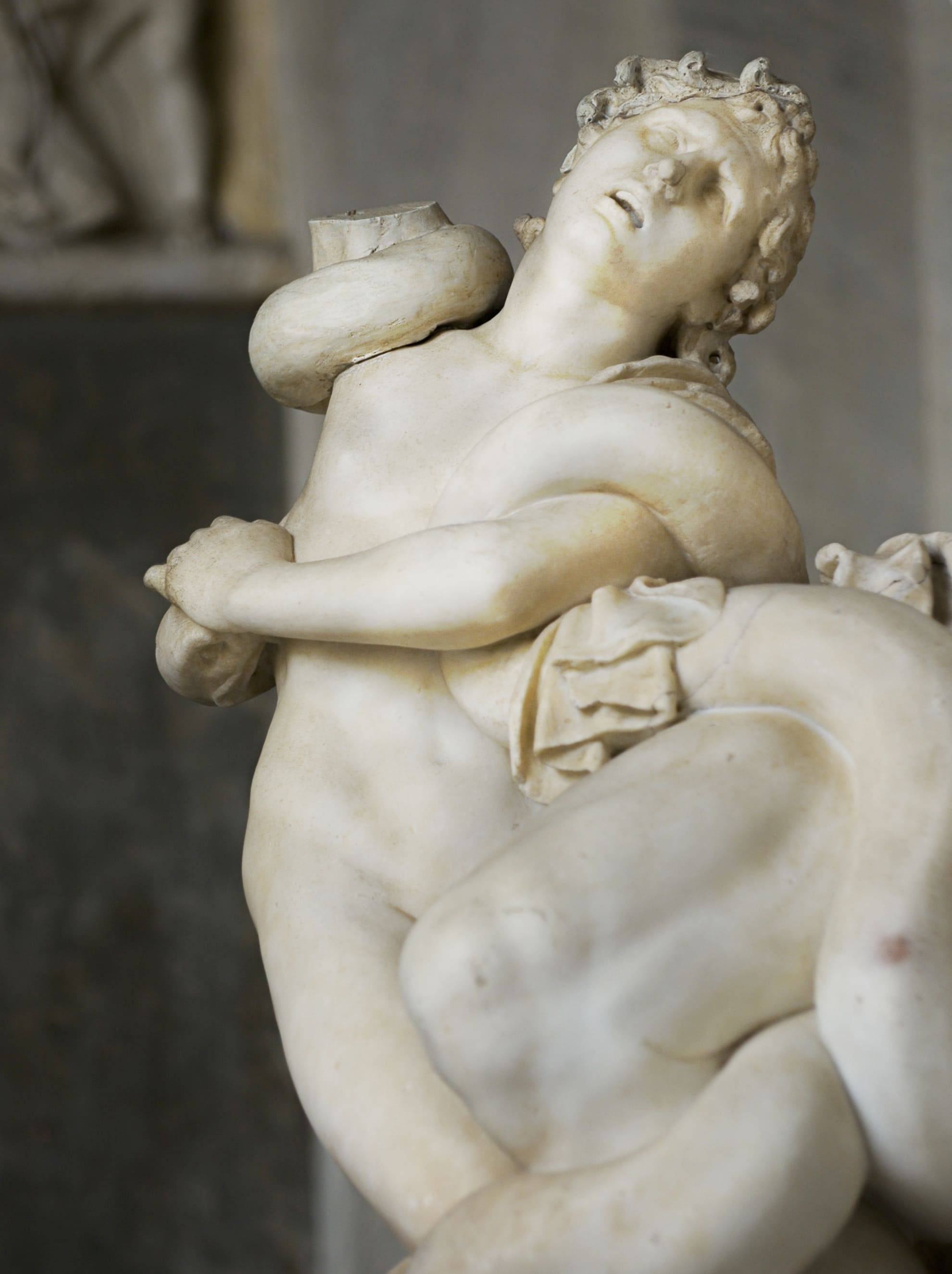 Кроме этого, Буонарроти изваял фигуру спящего купидона в античном стиле. Состарив ее, Мкеланджело отправил статую с посредником в Рим. Там ее приобрел кардинал Рафаэль Риарио как древнеримскую скульптуру. Кардинал считал себя знатоком античного искусства. Тем сильнее он был возмущен, когда обман раскрылся. Узнав, кто автор купидона и восхитившись его талантом, кардинал пригласил молодого скульптора в Рим. Микеланджело, подумав, согласился. Риарио вернул свои деньги, потраченные на статую. Но ушлый посредник отказался продать ее обратно Микеланджело, сообразив, что сможет сбыть ее еще раз подороже. Позднее, следы Спящего купидона затерялись в веках.