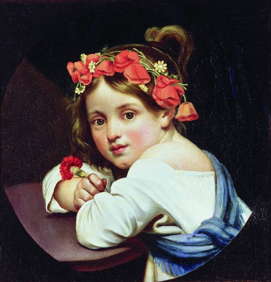 - «Девочка в маковом венке, с гвоздикой в руке» (1819) — художник тонко передает нежный образ ребенка с помощью искрящегося фарфорового тона кожи и контрастного темного фона. Лицо девочки очень выразительное, с внимательным глубоким взглядом.