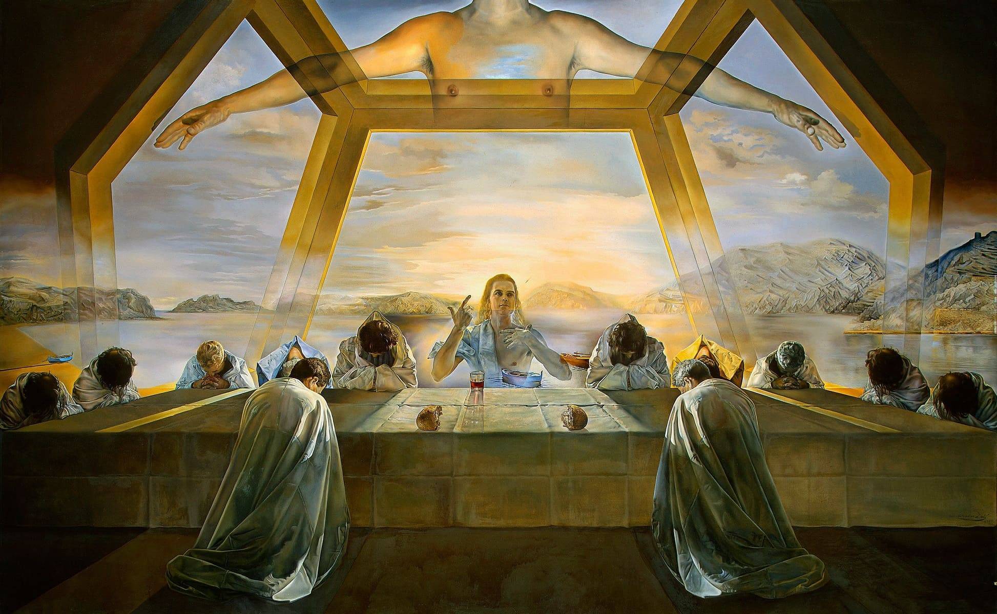 Дали, достигнув средних лет, последовал примеру своего отца, отрёкшегося от атеизма и ставшего примерным католиком. Начиная с 1949 года, художник пишет картины на религиозные темы. В том же году он удостоился аудиенции у Папы Пия XII. В Испании существуют давние и сильные традиции религиозной живописи. Дали видел себя их продолжателем, однако трактовал знакомые темы – Распятие Христа, Тайную вечерю, Деву с младенцем – очень необычно. Это вызывало разноречивые толки. Американский коллекционер Честер Дейл, выставлявший в нью-йоркском музее Метрополитен картину Дали «Распятие», 1951 год, назвал её «очень честной и по-настоящему великой». Американский критик Джон Кэнедей, напротив, посчитал это полотно «вульгарным проявлением нездорового эротизма». Точно так же он охарактеризовал и «Тайную вечерю», 1955 год.
