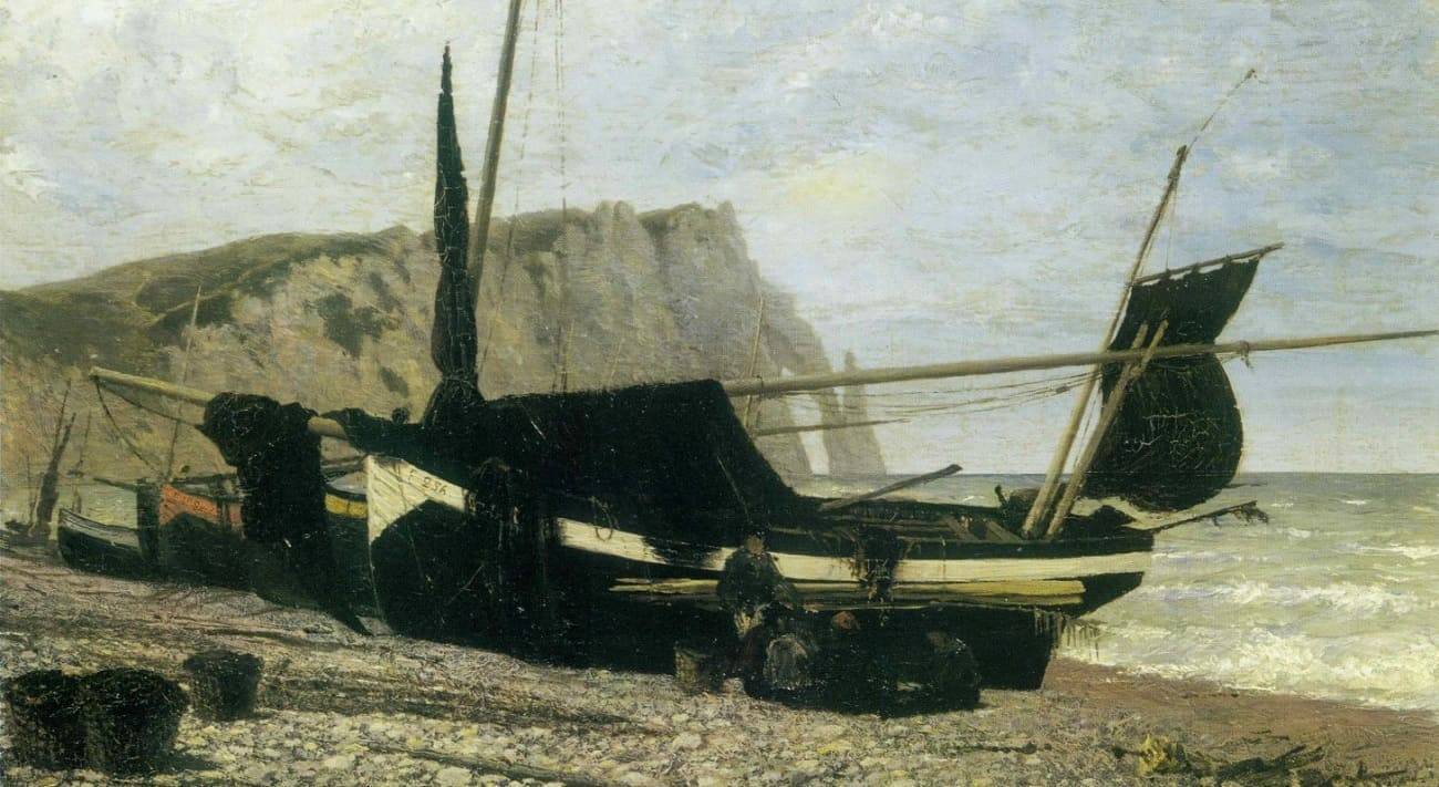 В пейзажных работах той поры в полной мере проявились основные его живописные принципы – пленэрная свежесть цвета, естественный мотив, выверенная композиция и чёткий рисунок – в качестве примера можно обратить внимание на пейзаж Поленова «Рыбацкая лодка. Этрета