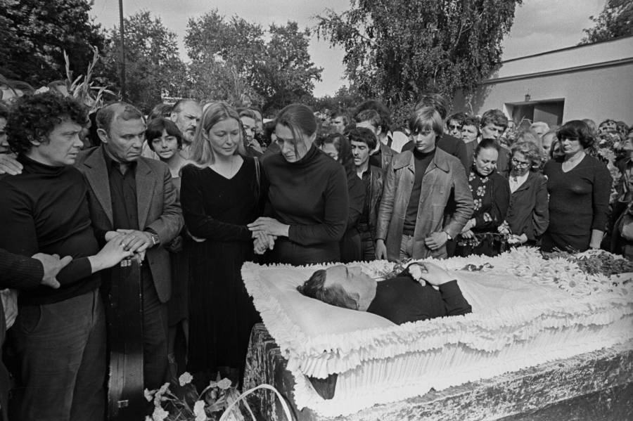 Несмотря на то, что информация о похоронах не распространялась, проститься с великим артистом пришла огромная масса людей. Очередь, двигавшаяся ко входу на «Таганку», растянулась на девять километров.