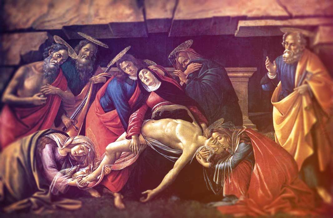 С. Боттичелли «Оплакивание Христа» (1495)Три Марии и Иоанн Богослов склонились в горе над безжизненным телом Христа. Весь день они простояли у креста, наблюдая его муки и смерть. Иосиф из Аримафеи, придя к Пилату, просил тела Иисусова. Тогда Пилат приказал отдать тело. Иосиф изображён с терновым венком в руке. Взяв тело, Иосиф обвил его чистою плащаницею и положил в новом своем гробе, который высек в скале – в том гробе, который Иосиф, предчувствуя собственную смерть, приготовил себе самому.Боттичелли поместил все фигуры очень близко друг к другу и у краёв картины. Они как бы образуют крест и единство над телом Христа.Иоанн Богослов прижался к Деве Марии, ведь Христос завещал любимому ученику относиться к ней, как к матери. Мария Магдалина обнимает ноги, а Мария, мать Иакова Младшего, голову Христа…Боттичелли умер 17 мая 1510 г. Похоронен на кладбище церкви Всех святых во Флоренции.В творчестве Боттичелли ярко воплощены черты возвышенной поэтичности, утонченности, изысканности, одухотворенности, красоты. Это один из самых эмоциональных и лиричных художников Возрождения.