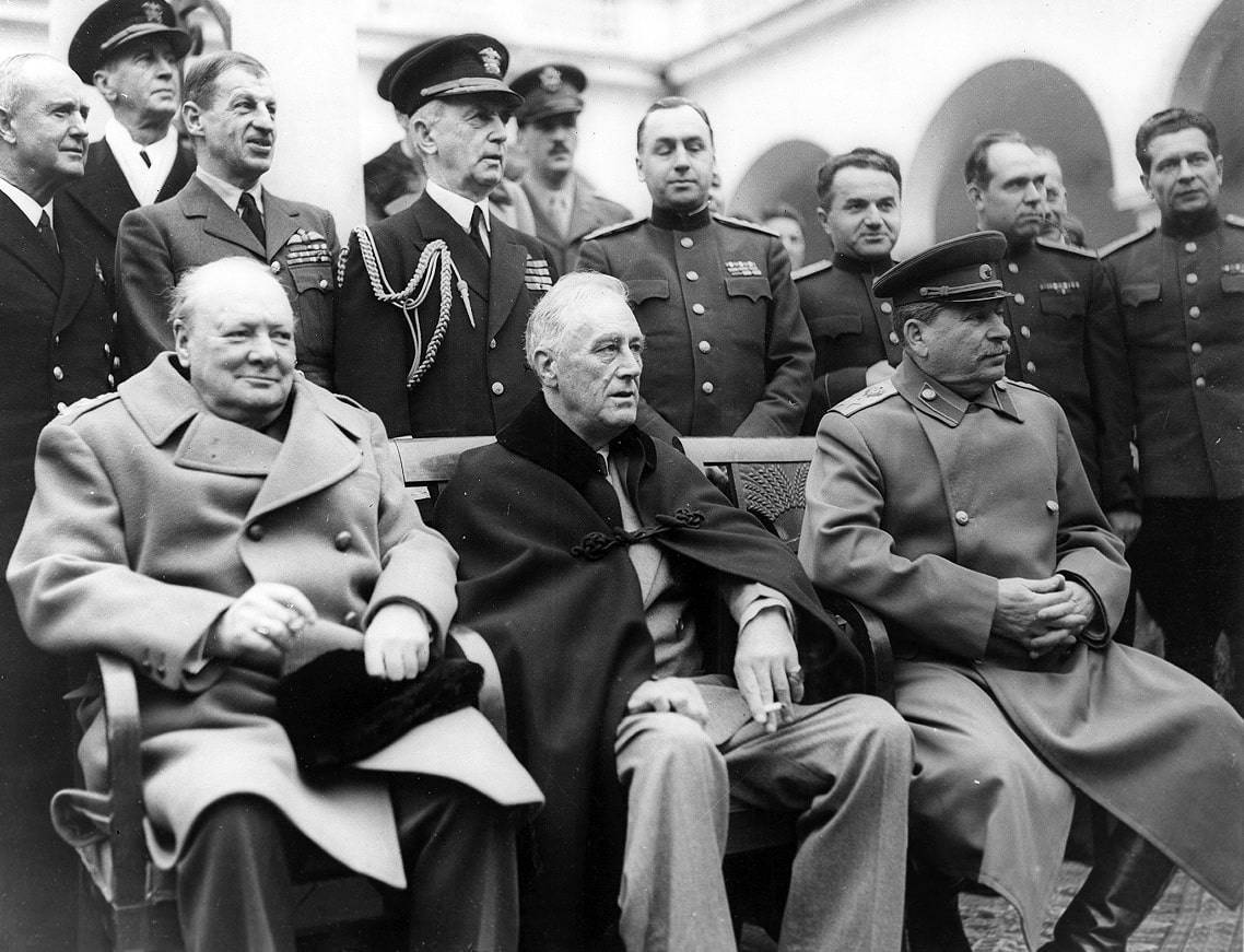 В феврале 1945 года была проведена Ялтинская конференция. В ней участвовали Черчилль, Рузвельт и Сталин.