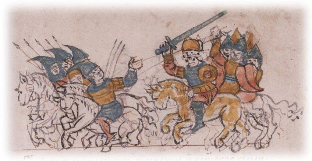 Поход Юрия Долгорукого вместе с половцами на Волжскую БулгариюМиниатюра Радзивиловской летописи