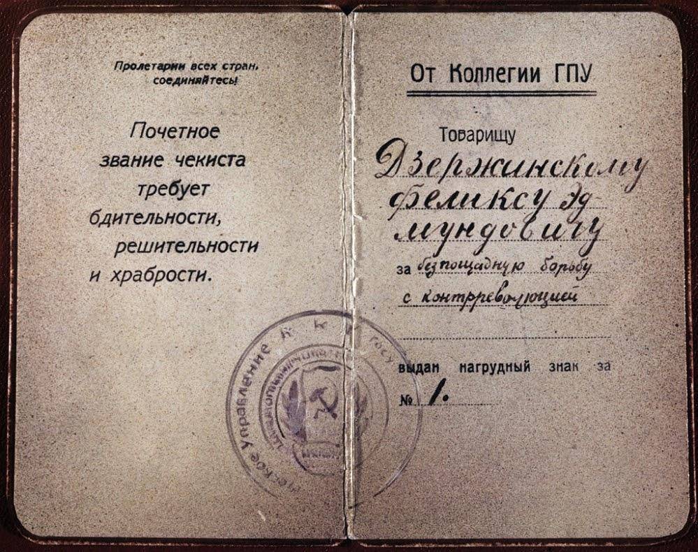 Грамота о присуждении Дзержинскому звания почетного чекиста. Фото – Википедия
