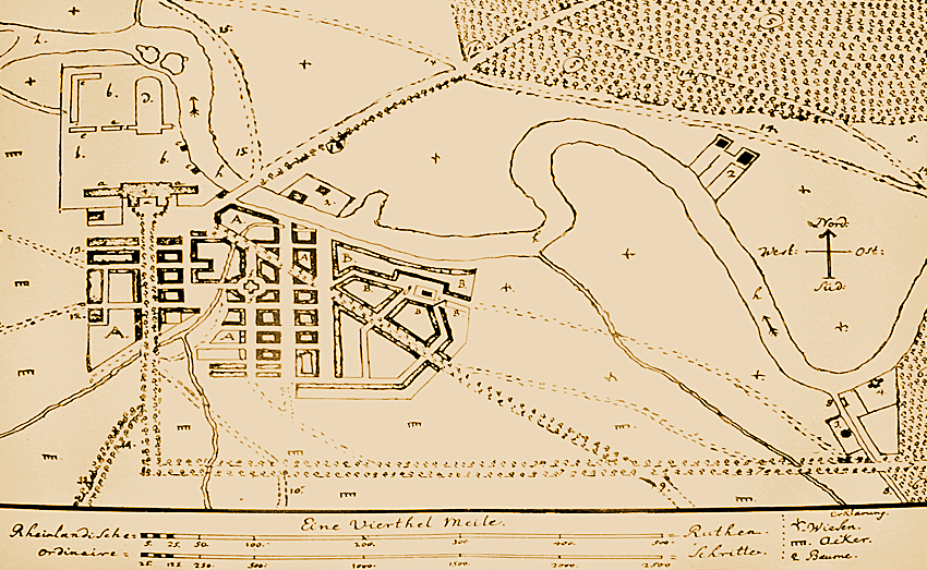 Ферма Эйлера в Литцове, ныне Шарлоттенбург – часть Берлина; владения Эйлера отмечены латинской буквой “B”