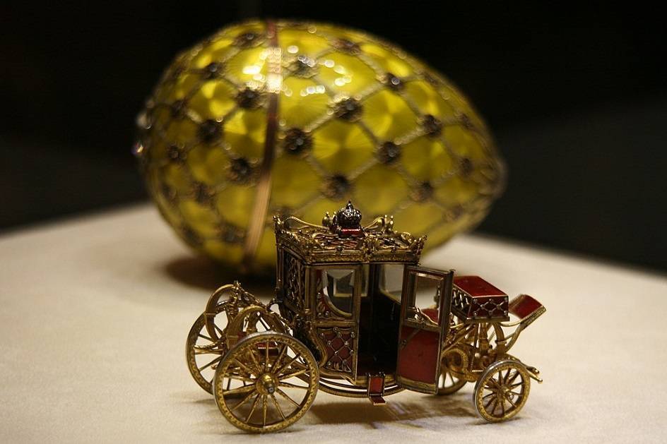 Сюрпризом изделия была модель кареты, которая была изготовлена еще при Екатерине II. Произведение украшено двумя алмазами, вензелем императрицы, также в нем есть надпись года – «1897». Итак, произведения знаменитого мастера стали настоящим эталоном в ювелирном искусстве. Его произведения имеют большое значение не только для отечественной, но и для мировой культуры. В настоящее время музей Фаберже занимается активной просветительской работой, а также сохранением наследия знаменитого ювелира. В интернете созданы виртуальные туры в 3D-формате, которые позволяют любому желающему ознакомиться как со всеми экспонатами, так и с интерьерами самого дворца, где они расположены.