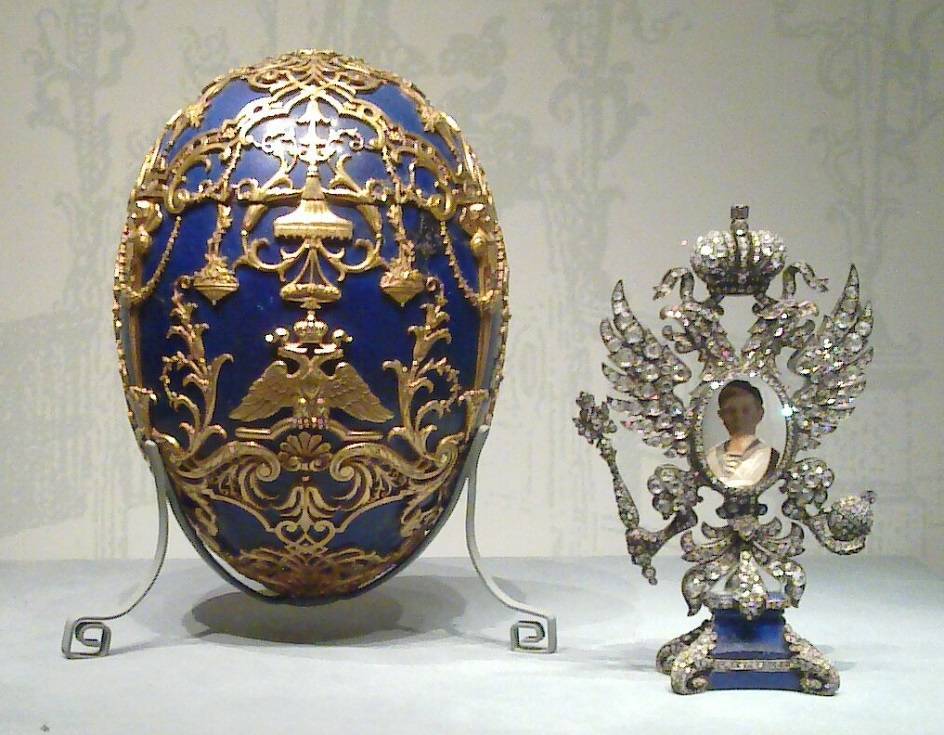 - «Яйца Фаберже» (1885-1917) — серия великолепных ювелирных изделий (71 предмет), изготовленных для русских императоров и небольшой группы частных лиц. До наших дней сохранилось 65 шедевров, которые в настоящее время находятся в закрытых коллекциях и национальных музеях разных стран. К сожалению, большинство уникальных драгоценных работ в 1930-е годы были за бесценок проданы большевиками в рамках программы поиска средств для индустриализации народного хозяйства СССР.