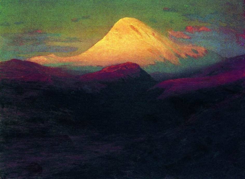 - В 1888 г. состоялась поездка Куинджи на Кавказ. Под впечатлением от путешествия Архип Иванович создал ряд романтических горных пейзажей.