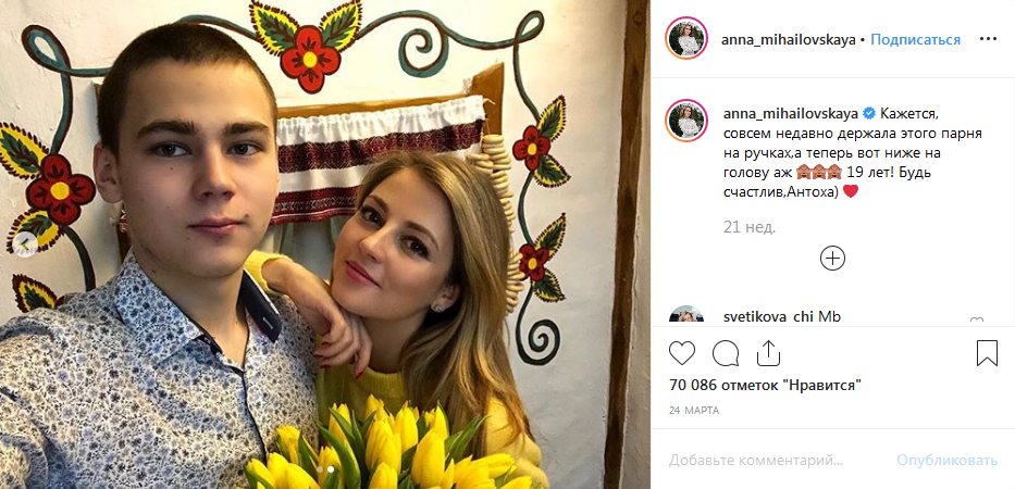 Сын Анны Михайловской – Мирослав Каратаев родился в 2020 году от ее законного супруга, Тимофея. Молодые родители нежно называют сына Мироша. Анна не могла позволить себе долго находится в декрете, поэтому уже через два месяца девушка вышла на работу. Расставание с сыном на весь день очень тяжело давалось молодой маме, ведь Аня все время переживала, как там ее сынок, да еще и кормила грудью.