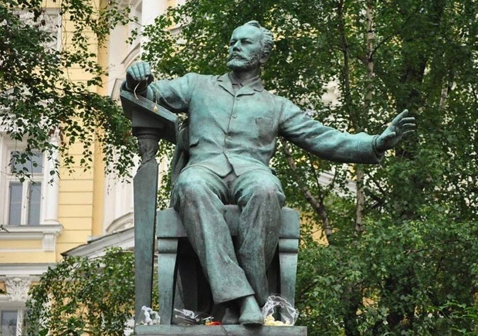 «Памятник Чайковскому» (1954) — гениальный композитор изображен в порыве творческого вдохновения. Скульптура установлена у Московской консерватории, и Петр Ильич словно прислушивается к музыке, льющейся из ее окон, дирижирует ей в такт.