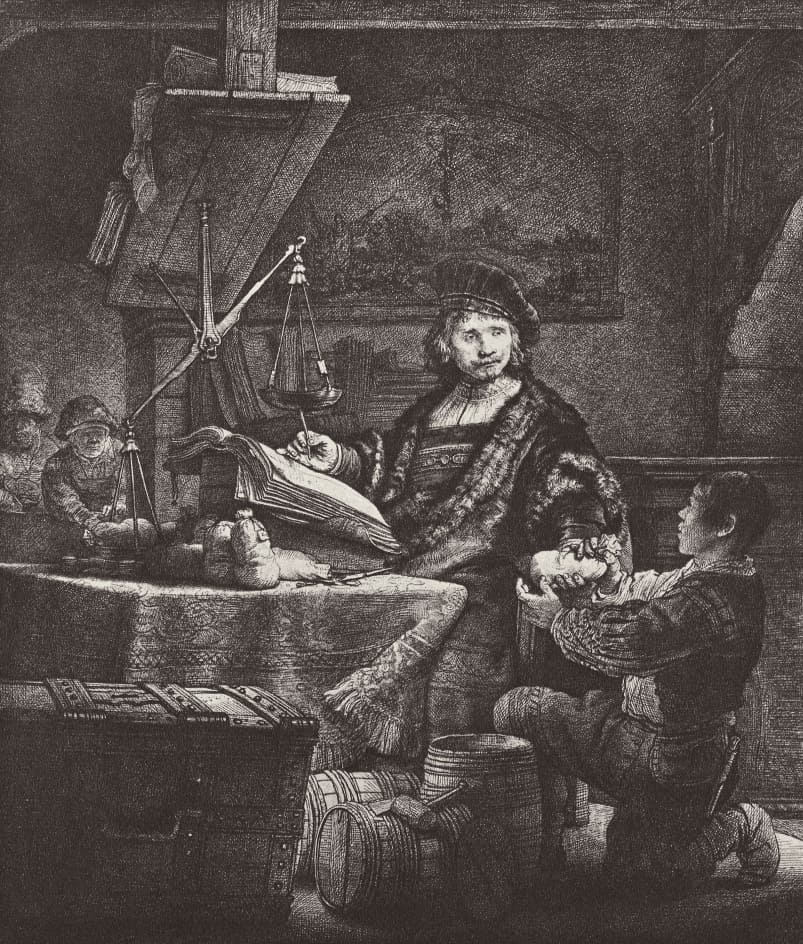 Много времени в эти годы Рембрандт стал уделять офортам. Из-под его руки вышли: «Мельница», «Три креста», «Христос, исцеляющий больных», «Мост Сикса» — настоящие шедевры графического искусства. Однако справиться с материальными трудностями художник так и не смог. В 1656 году дом Рембрандта был продан, а год спустя живописца и вовсе объявили банкротом. Не спасла мастера даже распродажа личных вещей и коллекции картин. Бедный художник был вынужден перебраться на окраину Амстердама в маленький заброшенный домик.