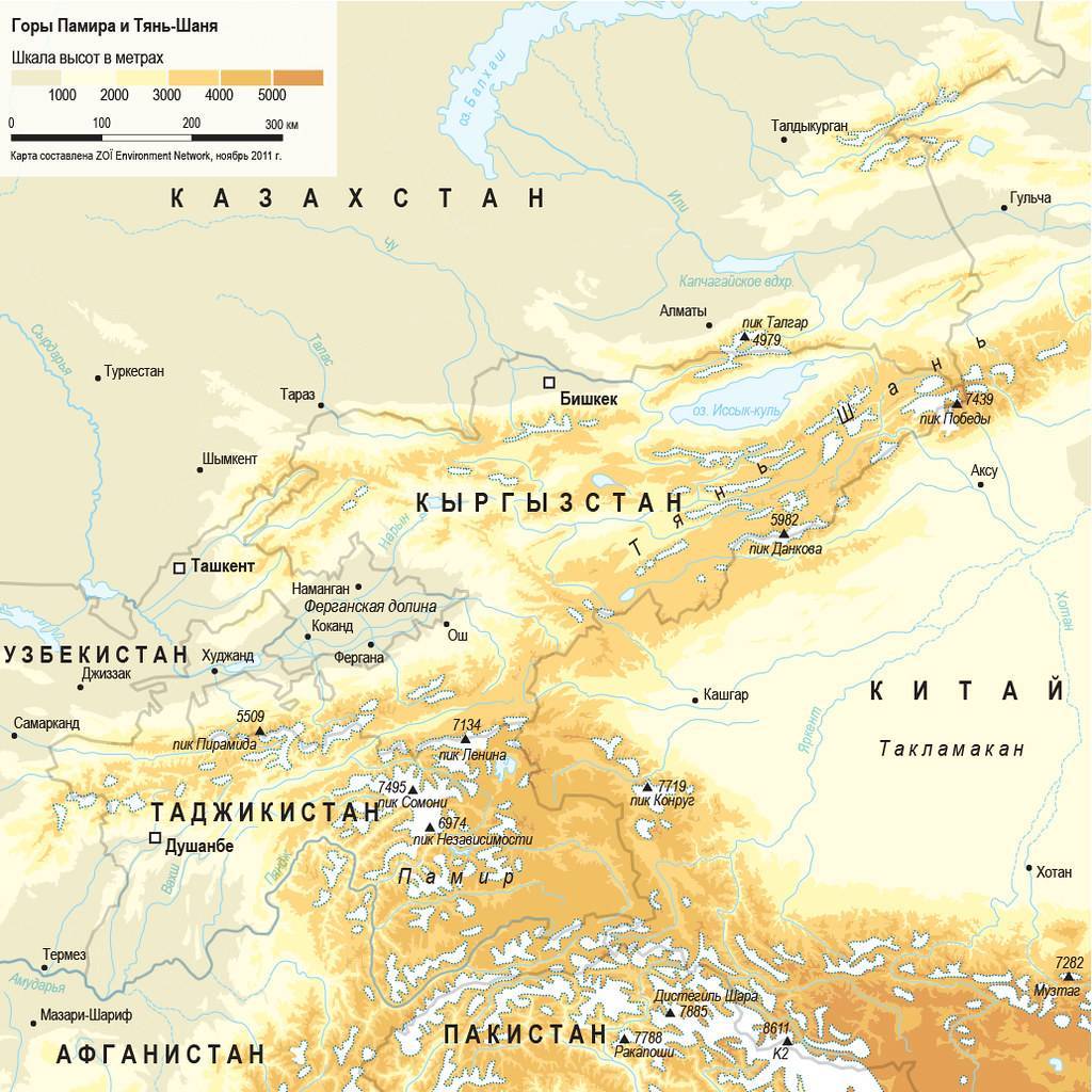 Тянь-Шань на современной физической карте. (www.flickr.com)