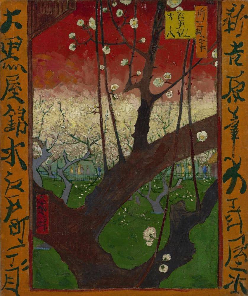 Эти прозрачные по цвету и радостные по настроению картинки привлекли Ван Гога тем, что помогали ему расслабиться и хотя бы на время забыть о тяготах повседневной жизни. Именно японские гравюры вдохновили художника на использование в своих картинах более ярких цветов и сглаженных форм, однако ему, в отличие от других, удалось удержаться от соблазна использовать характерные для японской живописи высокие ракурсы и спонтанность рисунка, казавшиеся столь привлекательными большинству его современников. В этюде, под названием «Куртизанка», прослеживается влияние работы Кесаи Эйсена, помещенной на обложке майского номера журнала «Пари Иллостре» за 1886 год.