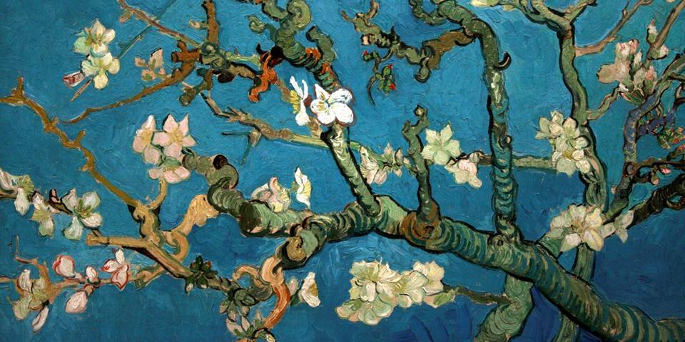 «Цветущие ветки миндаля» (Amandelbloesem) создаются в Сен-Реми в 1890 году. Весеннее цветение миндальных деревьев – символ обновления, зародившейся и крепнущей жизни. Необычность холста – в том, что ветки парят, не имея под собой основания, они самодостаточны и прекрасны.